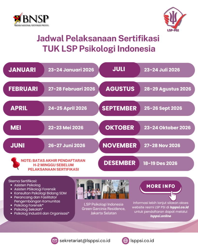 Jadwal Pelaksanaan Sertifikasi TUK LSP Psikologi Indonesia Tahun 2026